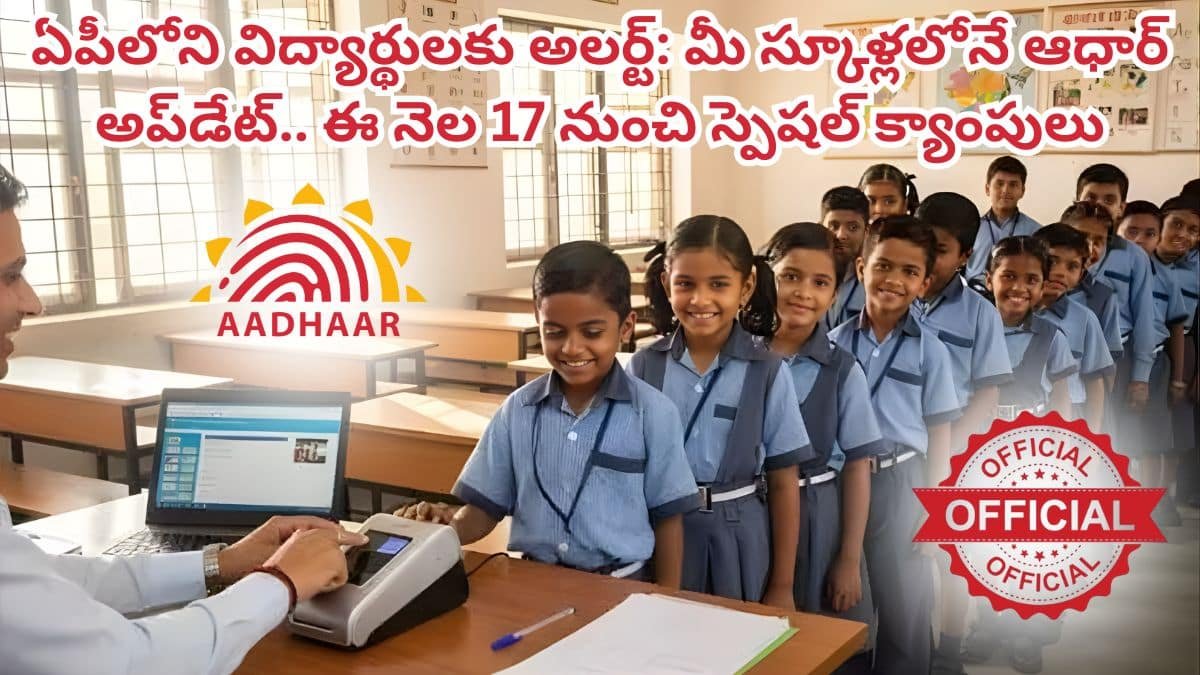 గుడ్ న్యూస్! ఏపీ విద్యార్థులకు అదిరిపోయే అలర్ట్: స్కూళ్లలోనే ఆధార్ అప్డేట్! (తేదీలు, వివరాలు చూడండి) | AP Students Aadhar UpdateCamps Schools Nov 17-26
